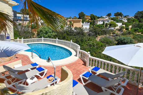 Luxury Ibiza style holiday villa with private swimming pool and great sea views for 6 people in between Javea and Moraira.